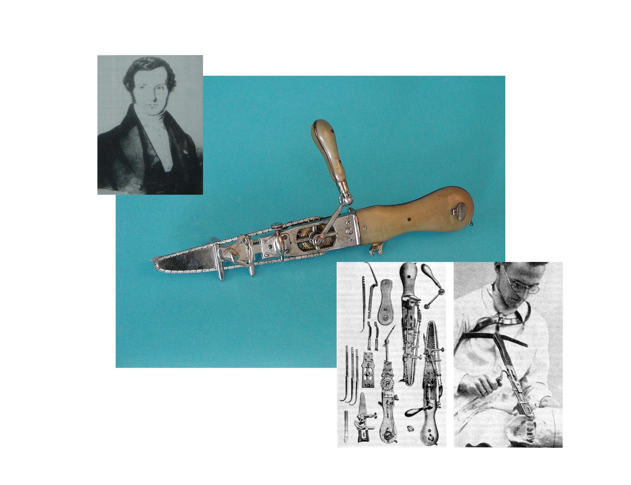 Le principe de la tronçonneuse aurait été inventé par l'Allemand Bernard Heine. Elle a trouvé une application dans le monde médical, plus précisément en chirurgie.